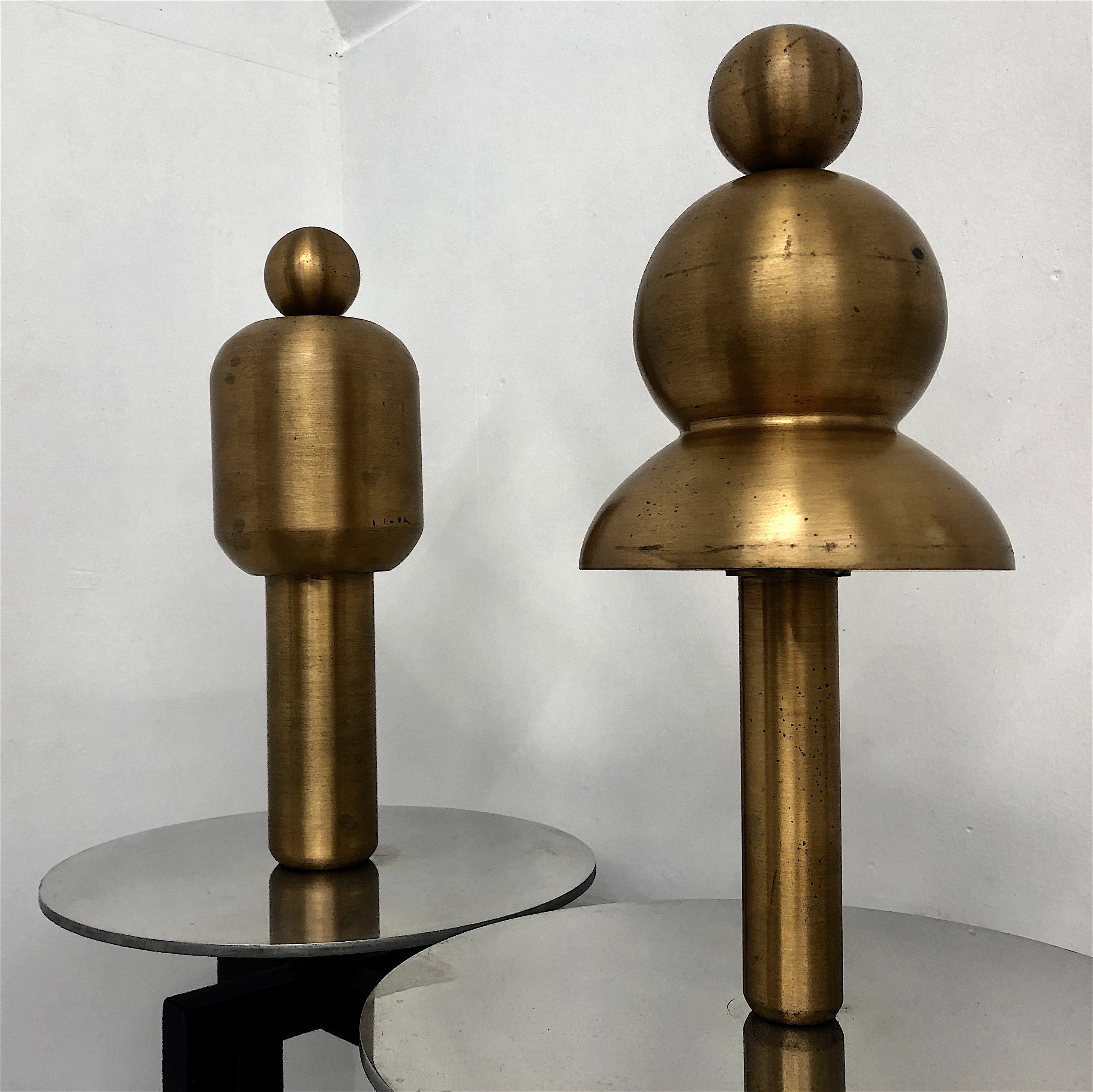 左)"Gentleman Rotation-回転紳士-" ブロンズ、アルミニウム / 5×12×12cm / 1994年