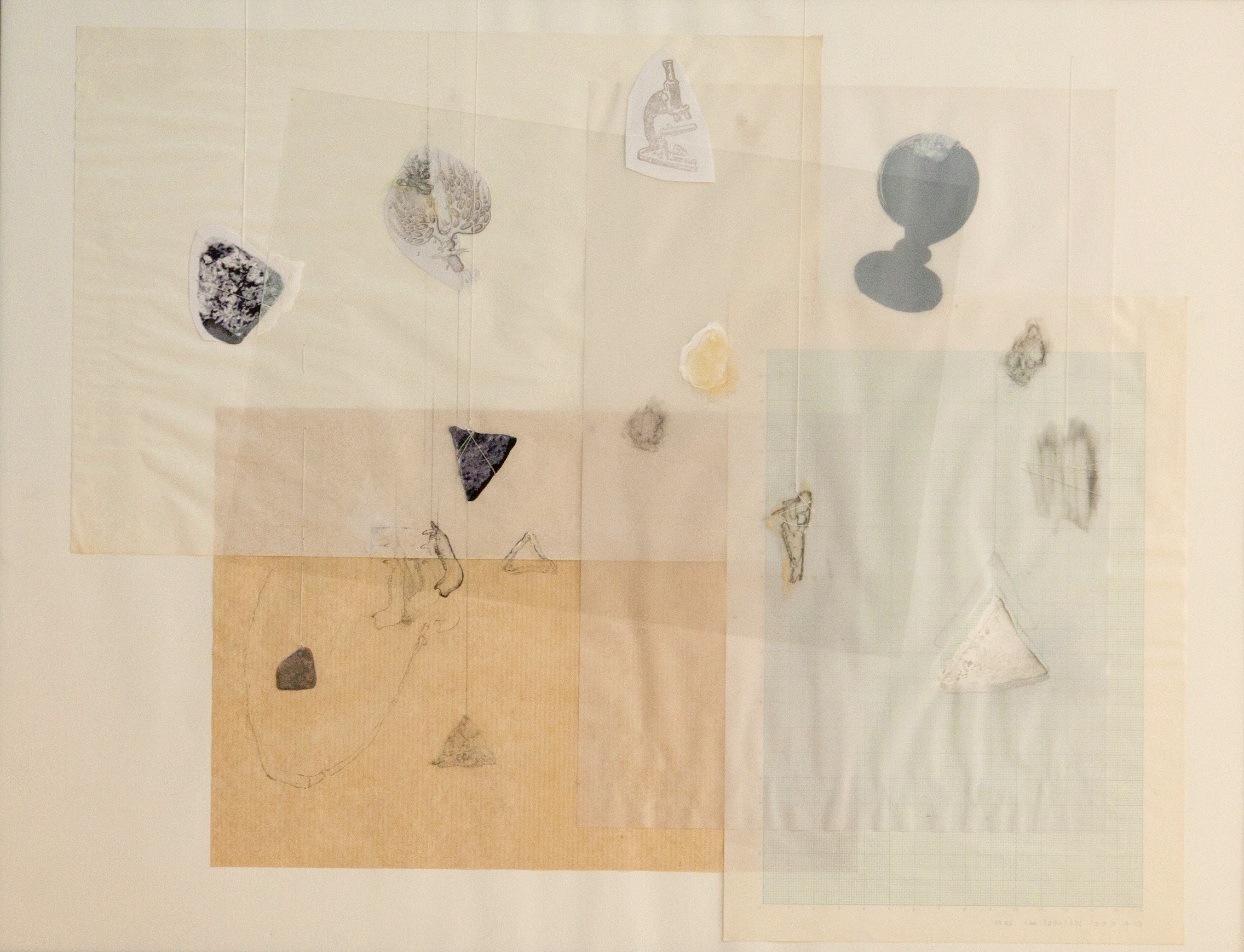 「インスタレーション “SS_Aug.2017“ 制作メモ」紙に鉛筆、現地収集した土器片ほか / 39.4×51cm / 2017年