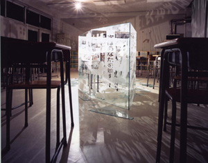 *参考作品:「sub-deb」/グラニュー糖、ガラス、机、椅子、光、音